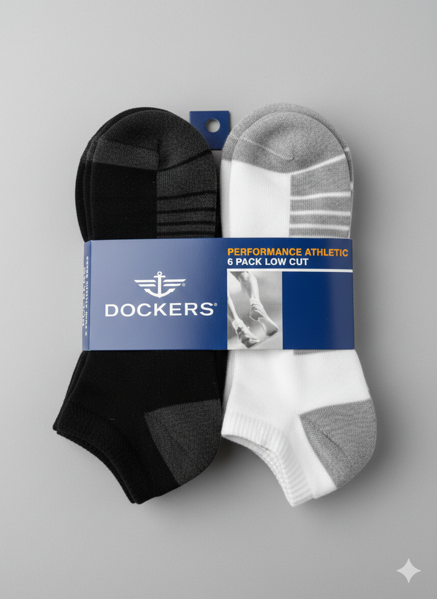 🧦 Dockers Premium Cushioned Ankle Socks – Pack of 6