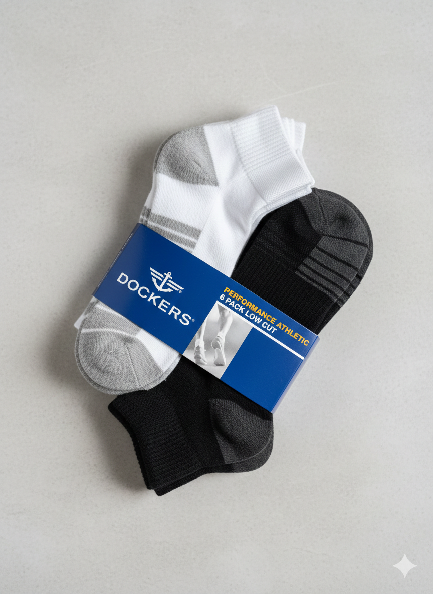 🧦 Dockers Premium Cushioned Short Crew (Low Cut) Socks – Pack of 6